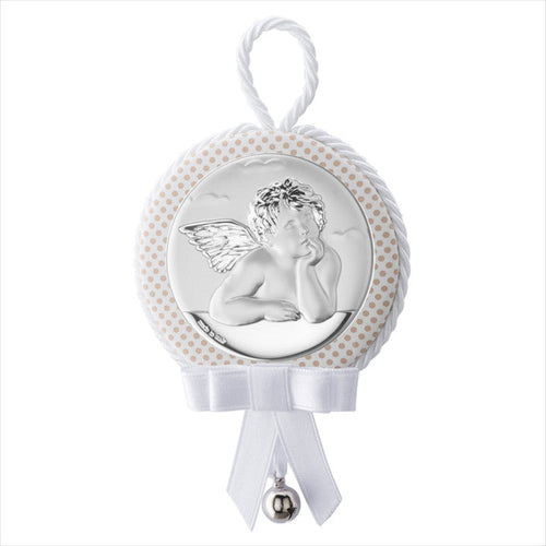 Medallón de Cuna Plata Ángel Rafael con Lazo y Cascabel