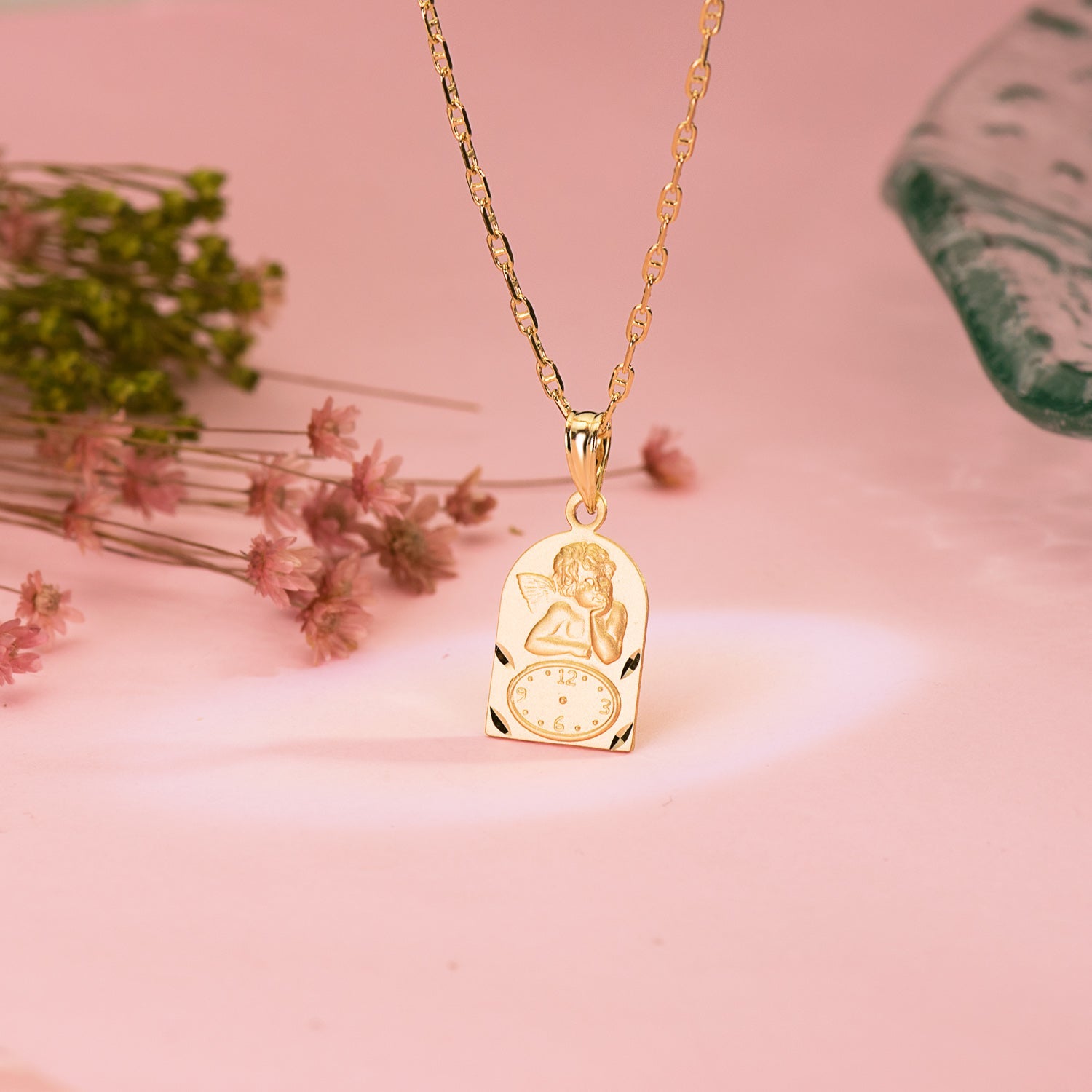 18K Medaille Erzengel Burol Mit Uhr Geschnitzt 18x11 mm