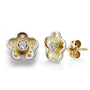 18K Bicolor Gold Flower Zirconia Earrings 8 mm