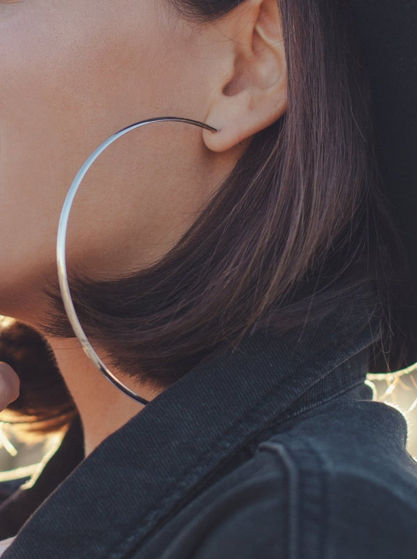 Large fine and extreme silver hoop earrings 73 mm