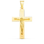 18K Yellow Gold Cross Glossy and Matte With Christ 32x20 mm