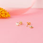 18K Yellow Gold Butterfly Enamel Earrings 6 Rings 4.5mm Nut Closure