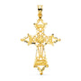 18K Yellow Gold Cross Filigree Carved Edges. 46x30 mm