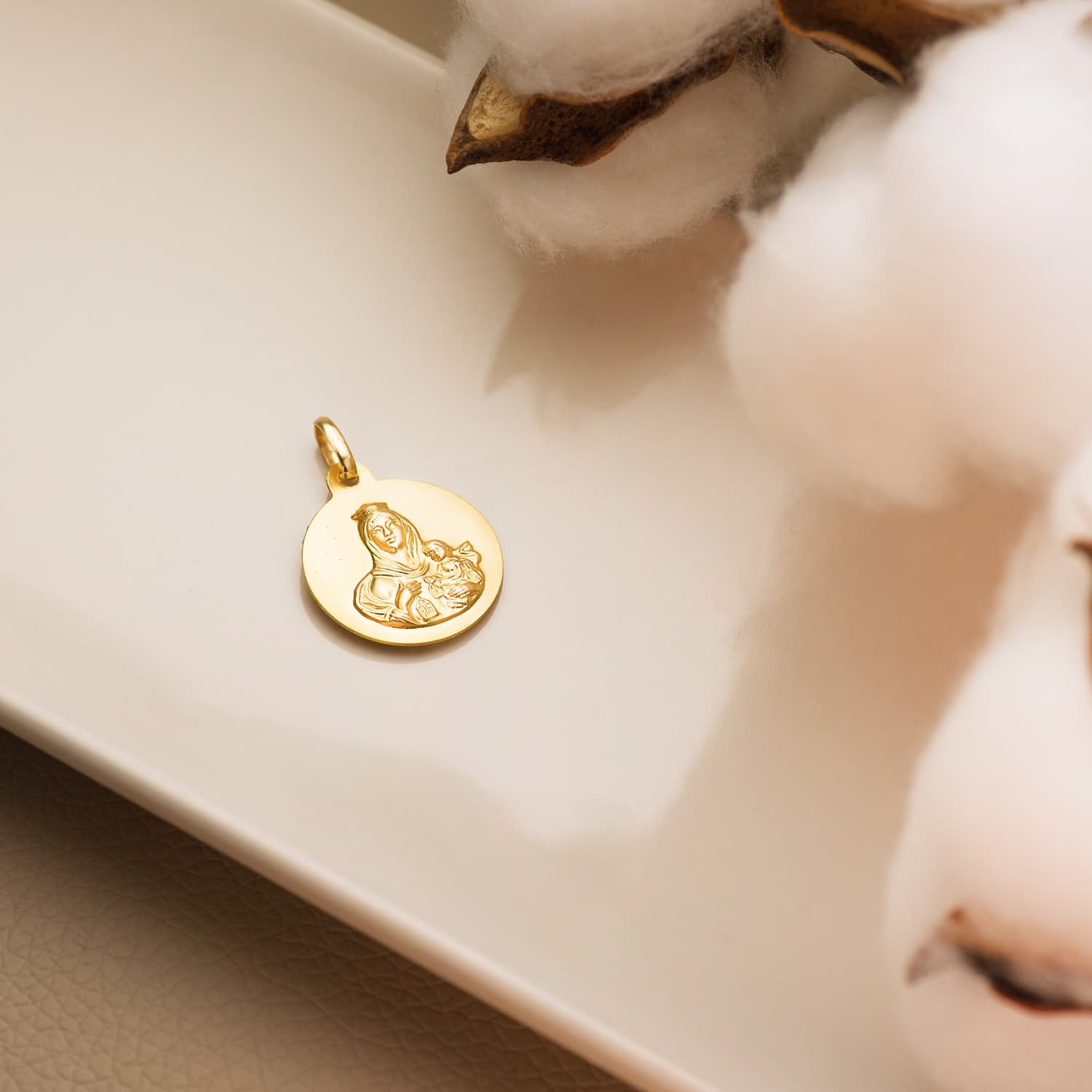 18K Virgin Del Carmen Medal Plain 18 mm