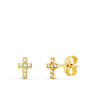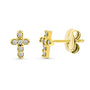 18K Yellow Gold Cross Earrings Diamonds 0.06 Qts Si-H. 6x4 mm Pressure Back