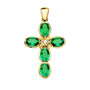 18K Bright Yellow Gold Cross 0.065 Carats 30x21 mm Emeralds 3.75 Carats