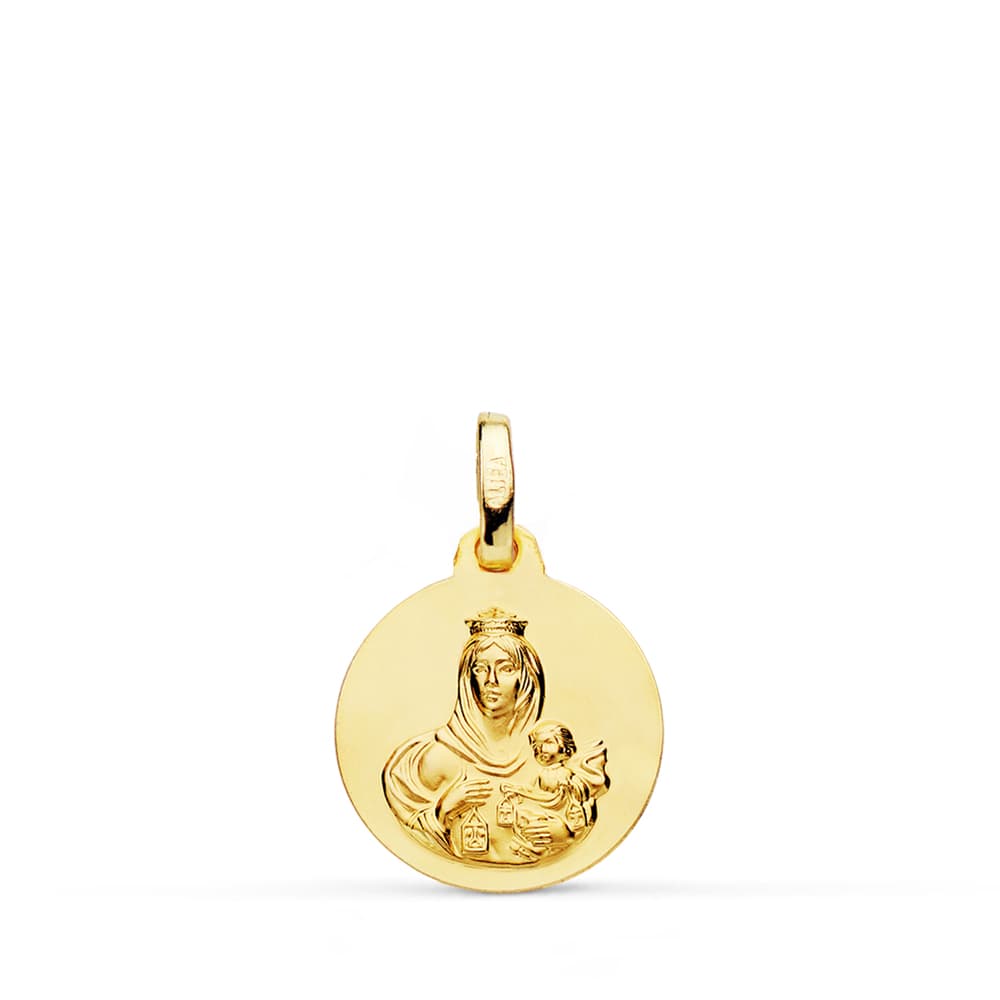 18K Smooth Scapular Virgin of Carmen Heart of Jesus 14 mm