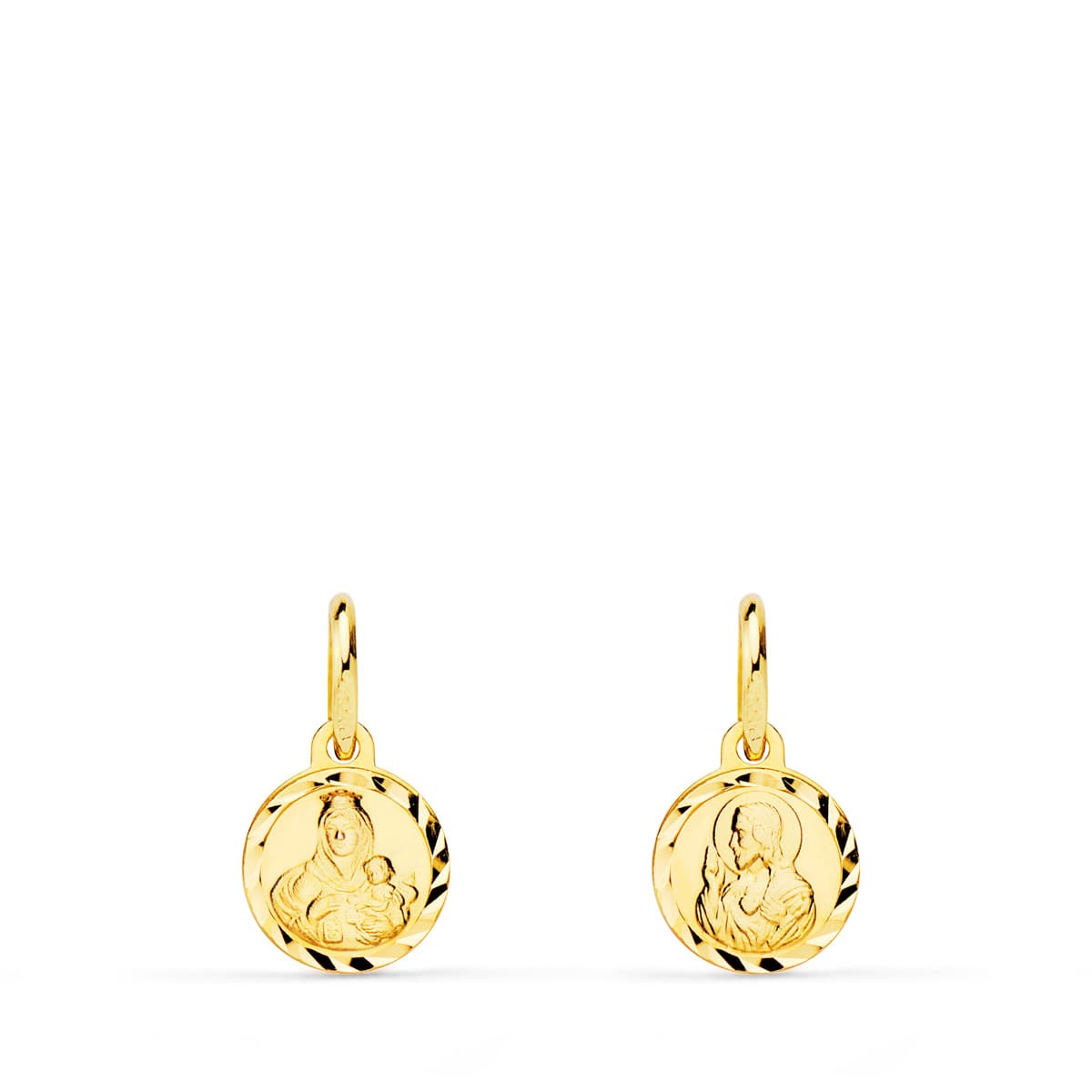 18K Mini Escapular Virgin of Carmen and Carved Heart of Jesus 8 mm