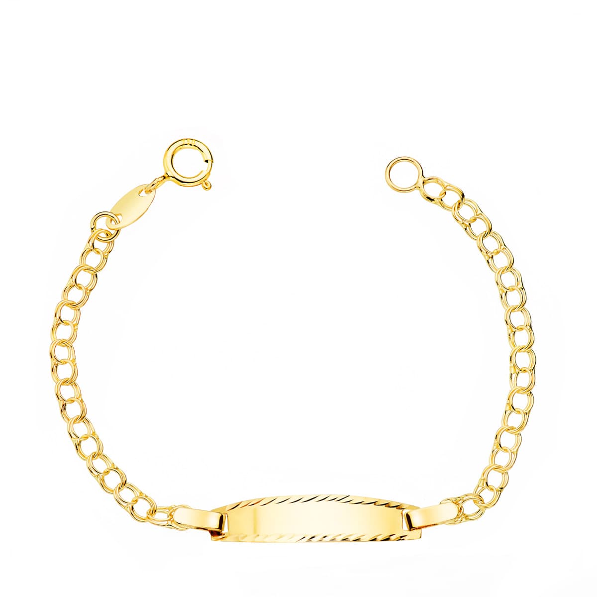 18K Baby Slave Yellow Gold Hungarian Plate Shiny Carved 19x4 mm 11.5 cm