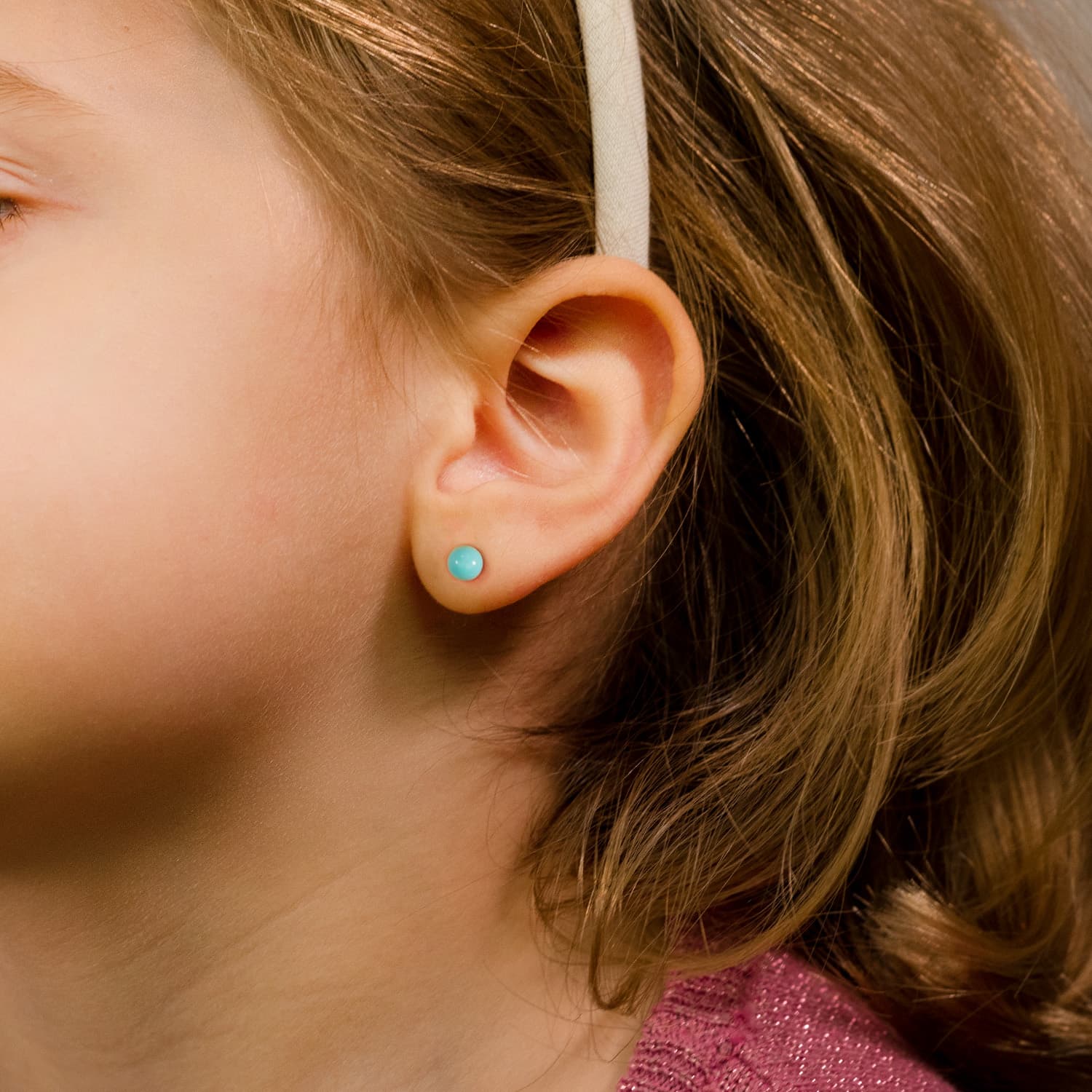 18K Yellow Gold Turquoise Earrings 4mm Nut Closure