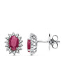 18K Earrings White Gold Ruby 1.00 Ct. Diamonds 0.28 Cts. Si-H