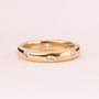 with white brilliant-cut faceted cubic zirconia arranged irregularly along the entire ring.