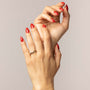 with faceted colored zirconias in brilliant cut arranged irregularly along the entire ring.