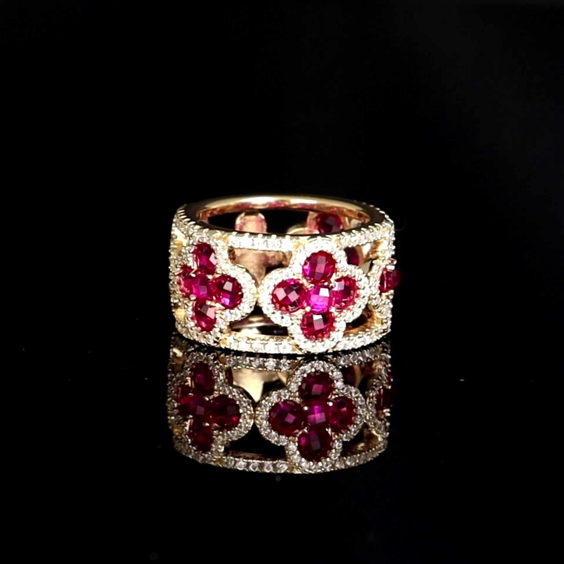 Double eternity in micro cubic zirconias to frame this wonderful triumph of 4-petal flowers with high-quality brilliant cut facets.