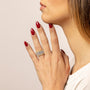 With round brilliant cut cubic zirconia with bezel setting.