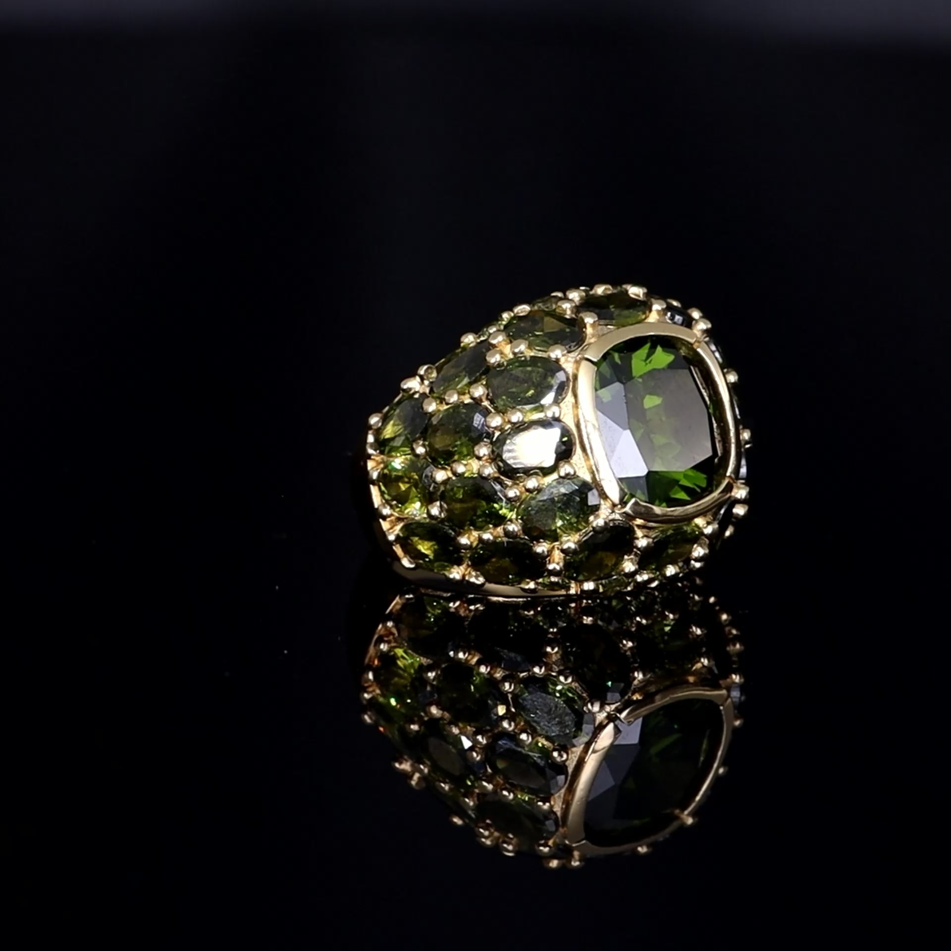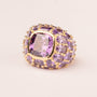 To enrich and enhance the central stone, a wonderful pavé of oval-cut zirconias set in prongs.