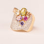 Pave' ring with multicolor cluster plated in 18k gold
