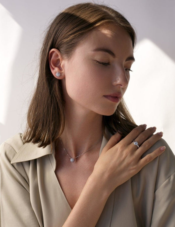 Shiny Silver Pendant with Round Zirconia Motif and Zirconia Detail
