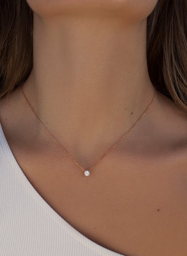 Small pendants with a rose gold-plated chaton design. A classic and basic design that is perfect to wear with all your looks. Small pendants in rose gold-plated silver with a round, shiny zirconia design. The ideal jewel to wear combined with other pieces from our collection. A basic that cannot be missing from your jewelry box!