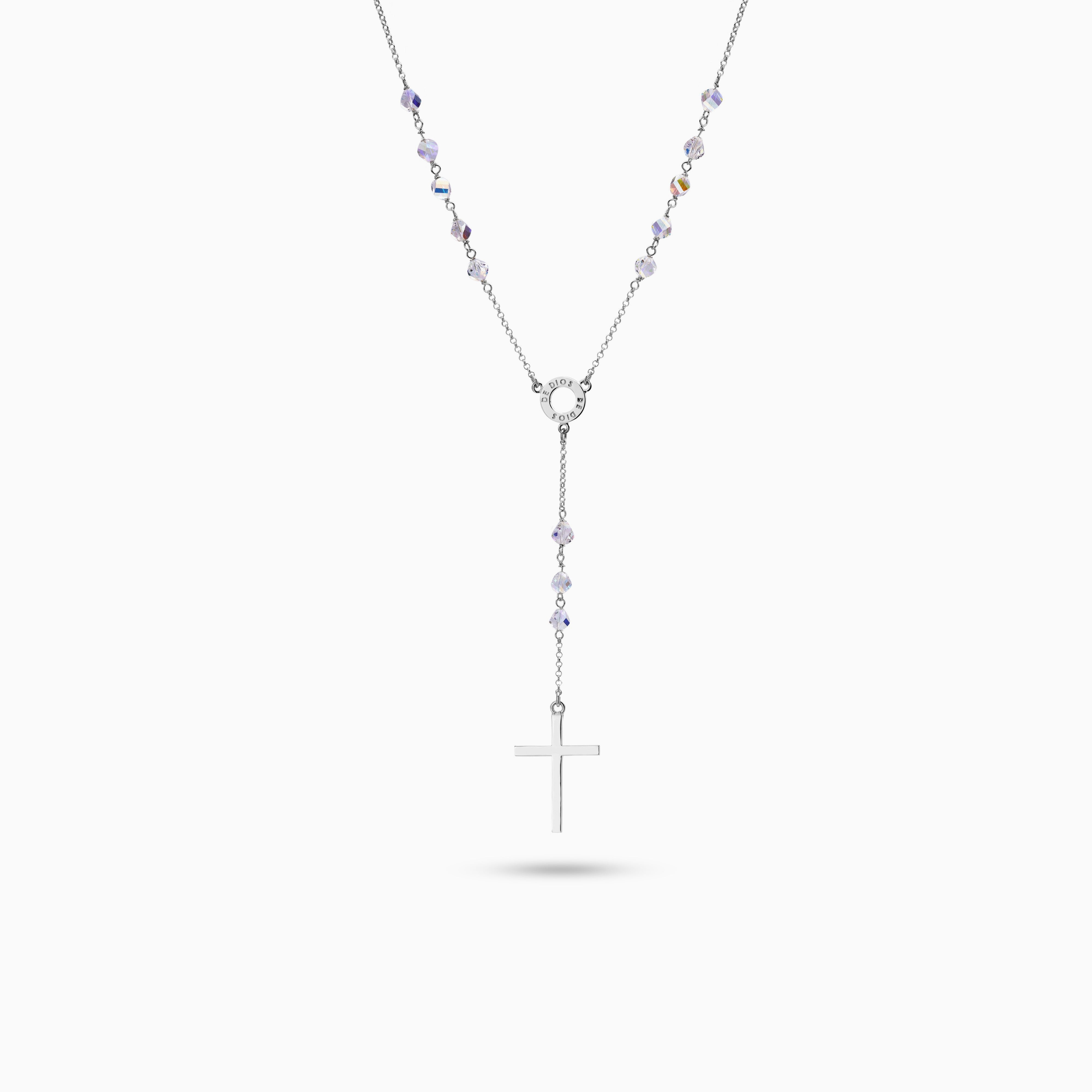 FINE 6 MM CRYSTAL ROSARY NECKLACE WITH WASHER AND GOD'S CROSS II. LENGTH 55 CM. MADE OF 925 STERLING SILVER