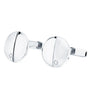 White Gold Round Matte Shine Cufflinks 15 mm Cubic Zirconia Rigid Oscillating Clasp