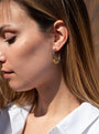 Hoop earrings with irregularly arranged stones in bright tones. Made of multi-shape adamantine quartz in amethyst, banana, oliviane, ruby ​​and azurite tones, they will allow you to create unique looks for your most special occasions. Dare to wear them!
