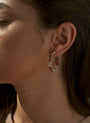 Hoop earrings with stones made of gems in warm tones. Made up of oval-cut adamantine quartz in brown, olivine and pink tones. These hoops are perfect to combine with your most festive outfits. Once you have them, you will never want to take them off!