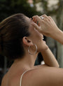 Large hoop earrings with thick design and hidden clasp. Very comfortable and practical earrings, while easily combinable with all your looks. The earrings that will give a casual touch to your daytime looks and elegance to your nighttime looks. You will love them!