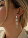 Natural stone pendant design earrings with gold plating. Perfect design earrings to wear on your ear with all your outfits. Long silver earrings with natural stone in pink and milky blue tones with gold-plated detail. An essential jewel in your jewelry box this season!