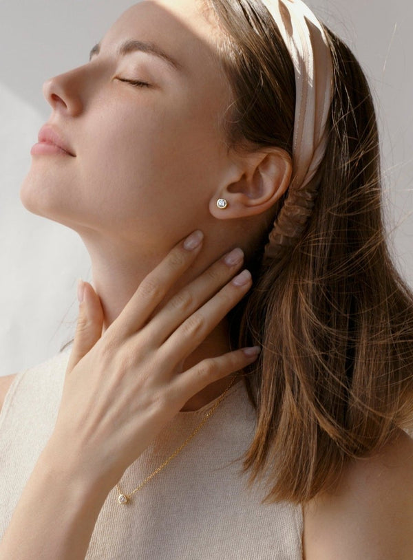 Small Silver Earrings Basic Circular Design with Gold Plated Zirconia 5 mm