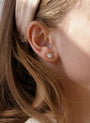 Gold-plated button earrings with a zirconia design. A perfect basic to combine with all your outfits. Small gold-plated button-style earrings with a central zirconia and silver outline. A must-have jewel in your jewelry box!