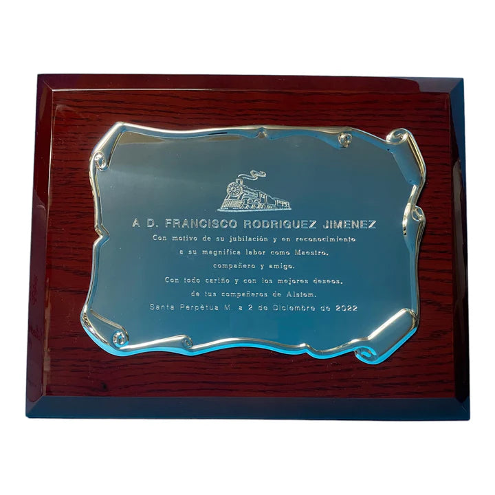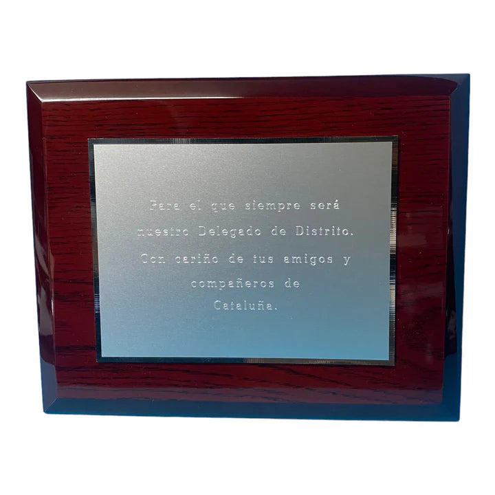 La placa cuenta con un soporte trasero de colocación opcional, se entrega en un estuche para su correcta presentación y debidamente empaquetada para regalo.