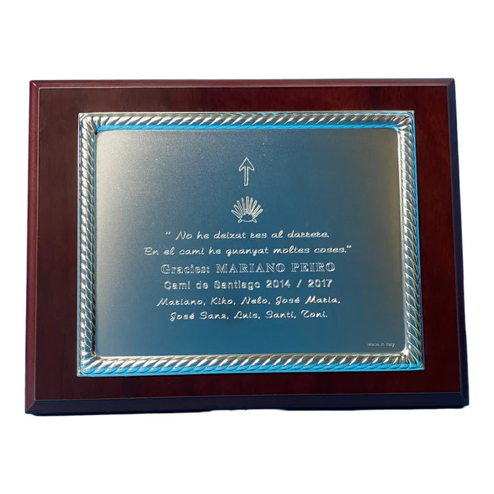 Para placas de plata, si lo desea, podemos crear una previsualización del grabado para su aprobación final antes de grabar la pieza.