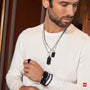 Men's Triple Bracelet Black Rhodium Steel, Black Leather and Natural Stones