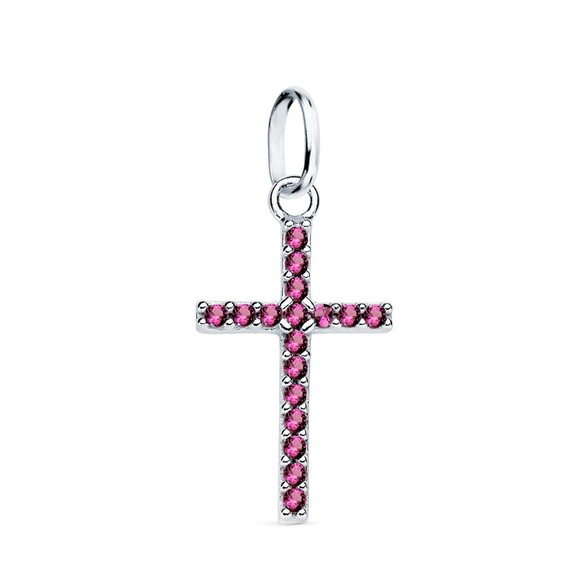 18K Cruz Oro Blanco Con Circonitas Amatistas. 16x10 mm
