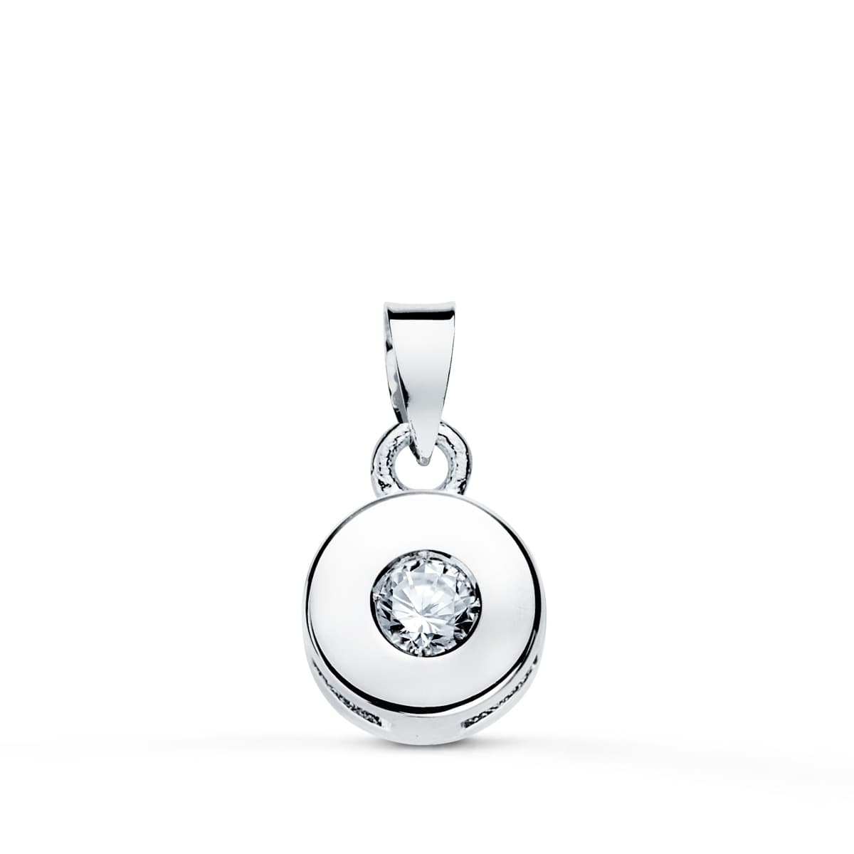 18K Colgante Oro Blanco Chaton 6 mm Diamante Talla Brillantes 0.065 Qts Si-H