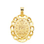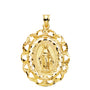 18K Medalla Oro Amarillo Virgen Milagrosa Cerco Filigrana Tallado 30x25 mm