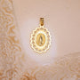 18K Medalla Virgen Milagrosa Cerco Calado 34 x 22 mm