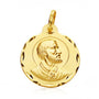 18K Medalla Oro Amarillo Virgen Niña Perfil Esmalte Blanco y Cerco Calado Brillo 23X16 mm
