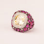 Abgerundeter Pavé-Ring in Rosa mit kontrastierendem Mittelstein