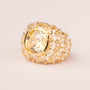 Um den Mittelstein zu bereichern und hervorzuheben, ein wunderbares Pavé aus oval facettierten Zirkoniasteinen, die in Krappen gefasst sind.
