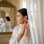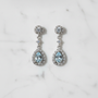 Pendientes de Novia Cortos Gota Pavé Circonitas Aguamarina Rosetón Redondo