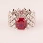 Malha alta e suave com zircônia central rubi com corte esmeralda